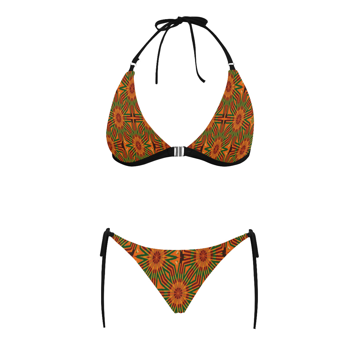 Kente 7 Buckle Front Halter Bikini Swimsuit (Model S08)